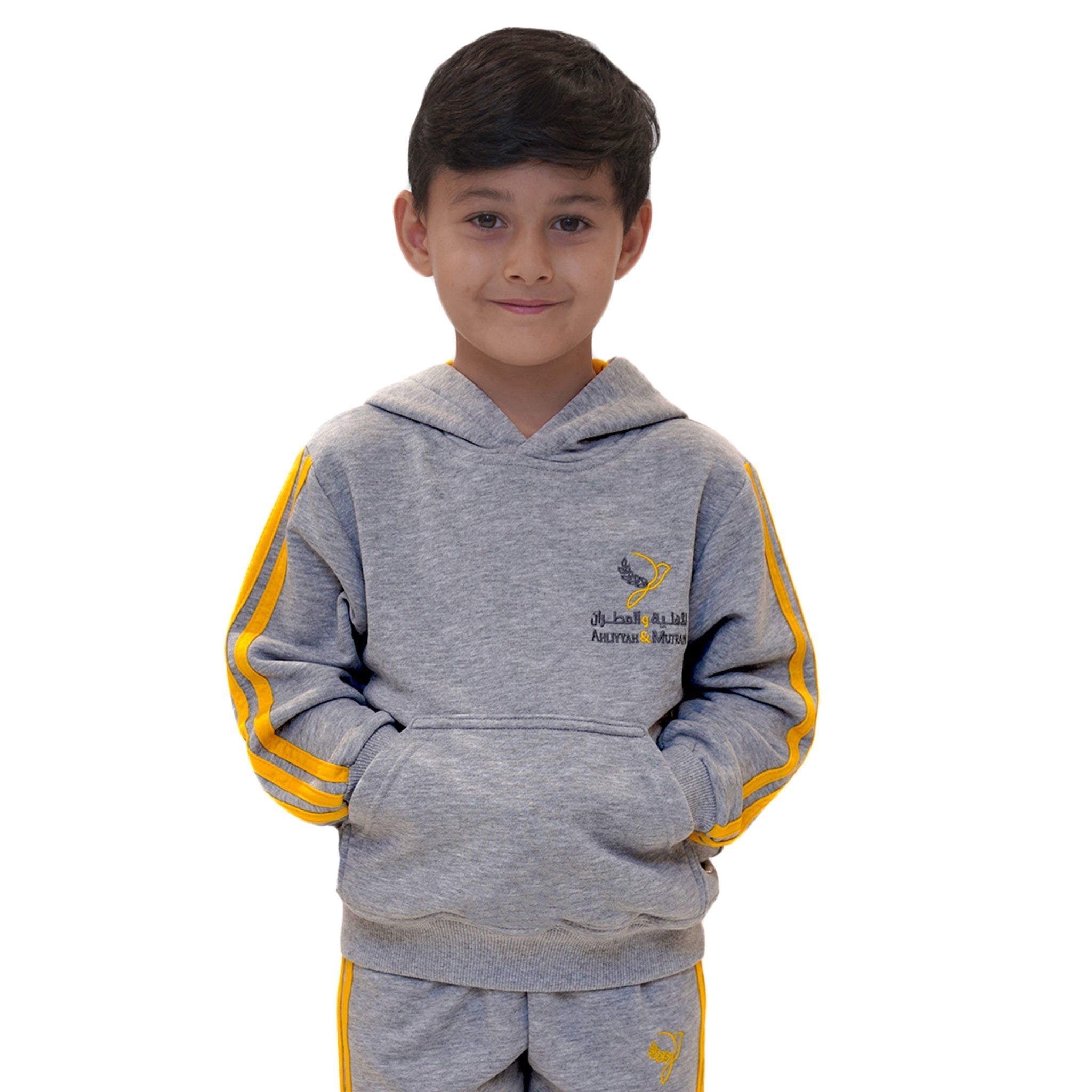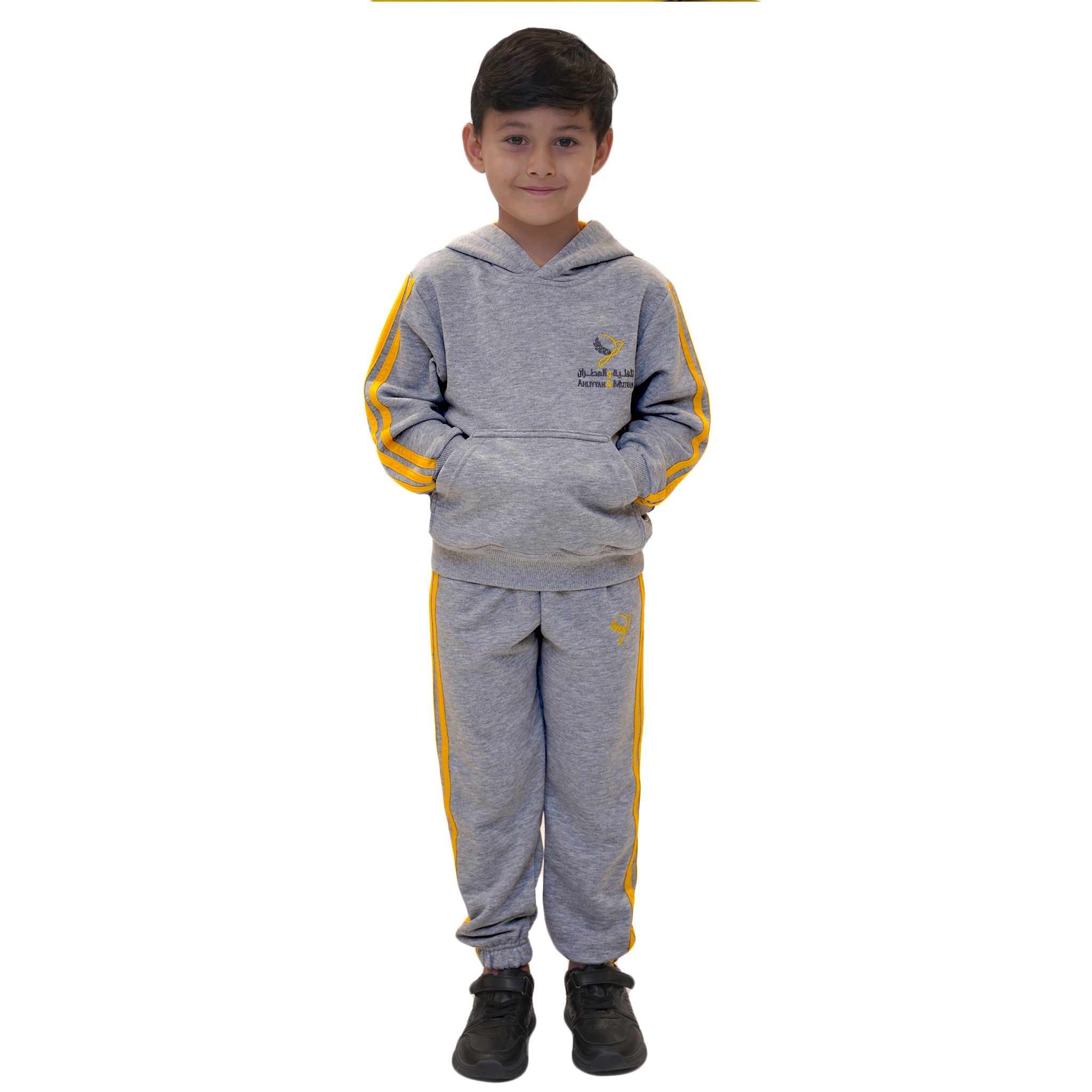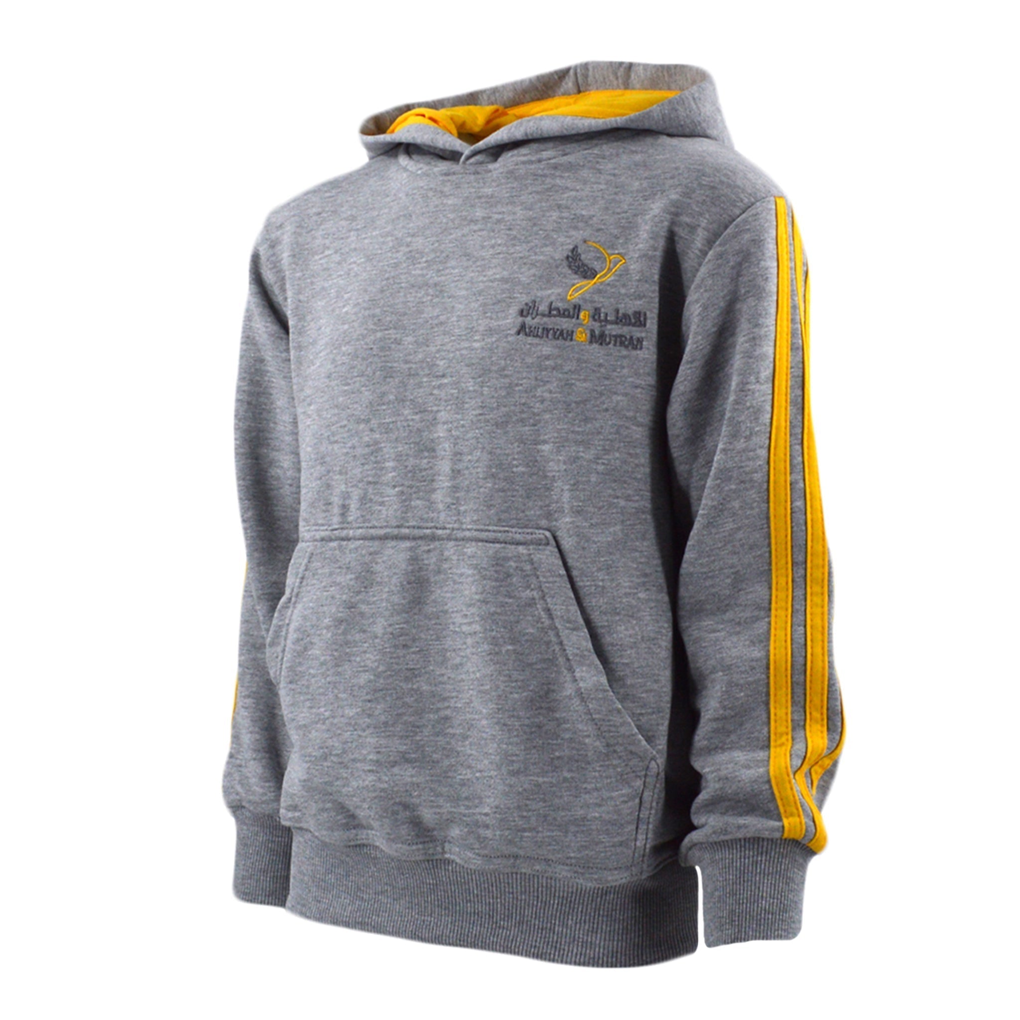 Keep your child cozy, active, and proudly in uniform with the official Ahliyyah & Mutran School PE hoodie. Designed in heather grey with bold yellow side stripes and the school logo embroidered on the chest, this hoodie delivers a sporty, modern look that’s perfect for school days and outdoor activities.