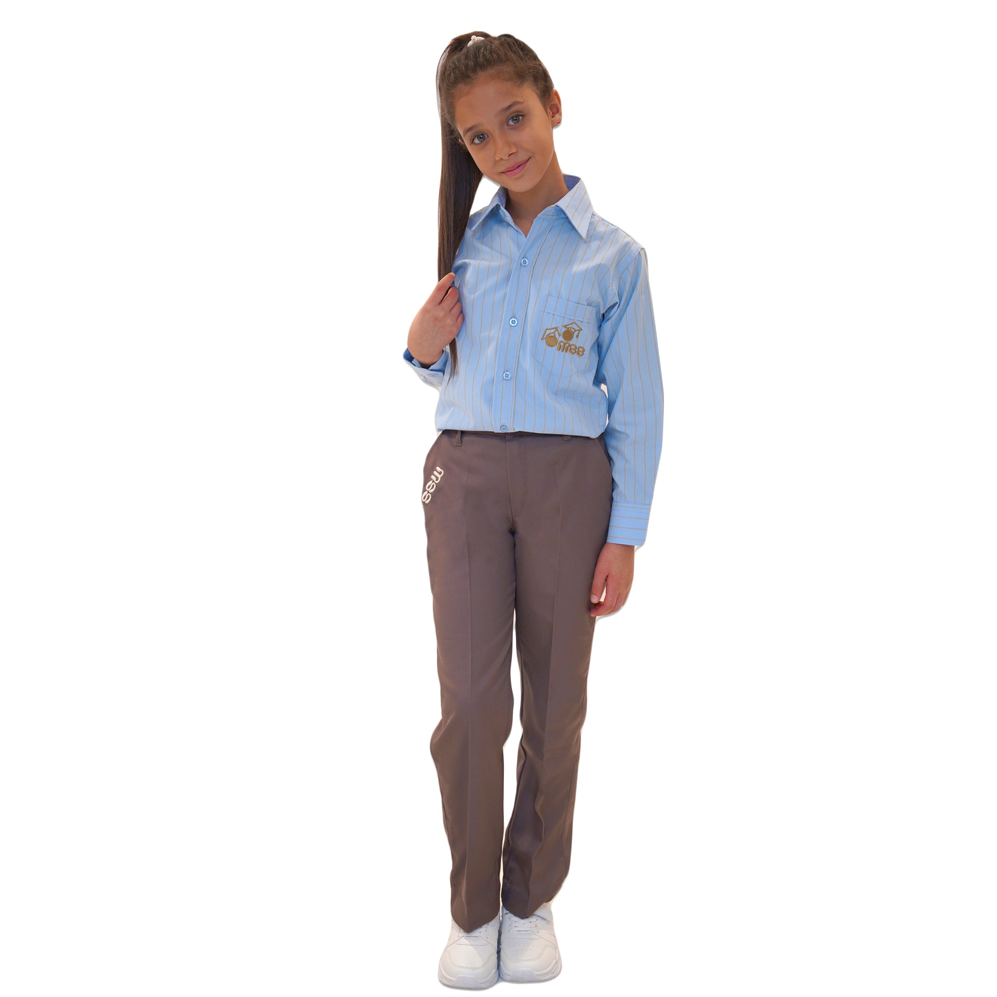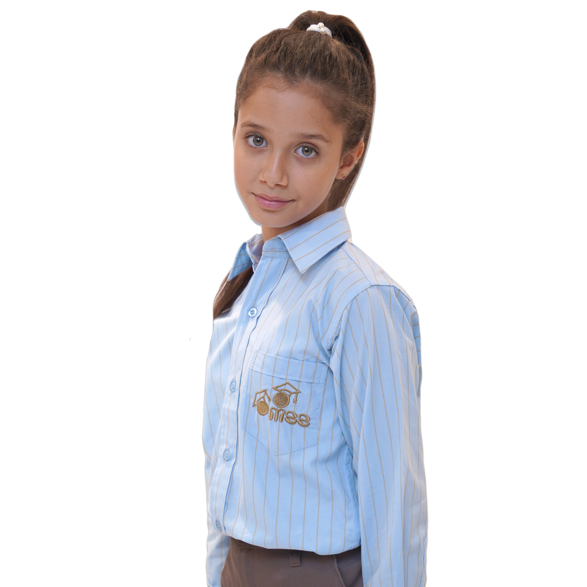 يتميز هذا القميص المدرسي باللون الأزرق الفاتح مع خطوط عمودية دقيقة تمنحه مظهرًا أنيقًا واحترافيًا. يتميز القميص بتصميم كلاسيكي بأزرار مع ياقة مدببة، مما يوفر ملاءمة رسمية ومريحة للطلاب. يوجد على جيب الصدر الأيسر شعار مدرسة مطرز باللون الذهبي، مما يضيف لمسة من الأناقة والفخر بالمدرسة. القميص مصنوع من قماش خفيف الوزن، مما يجعله مناسبًا للارتداء اليومي. التركيبة: 60% قطن، 40% بوليستر. هذا التصميم مثالي للحفاظ على مظهر أنيق ومتماسك للطلاب.