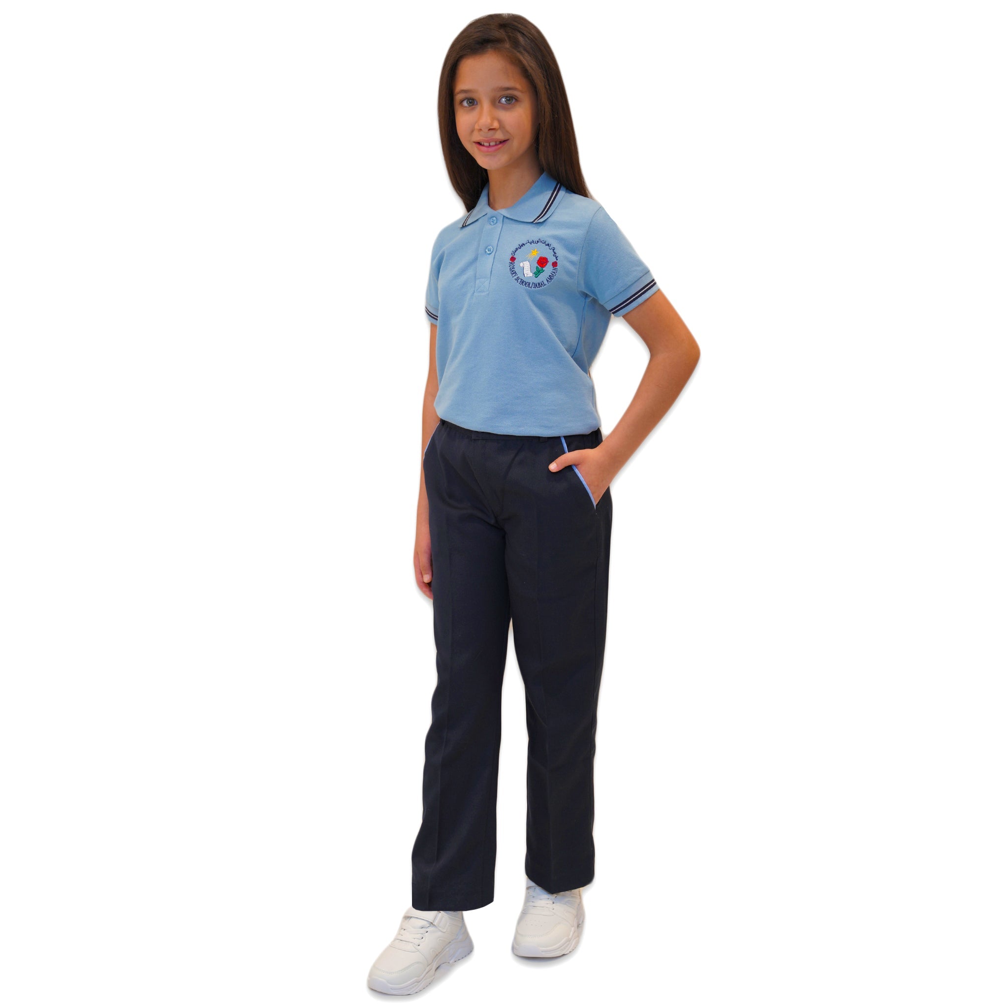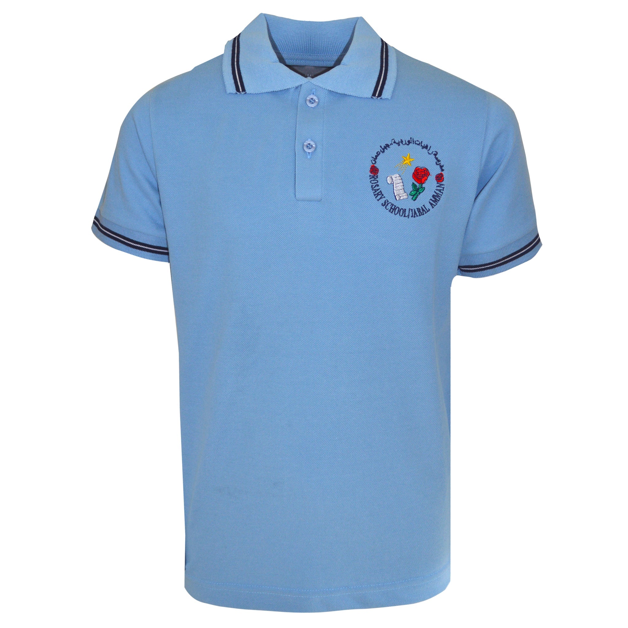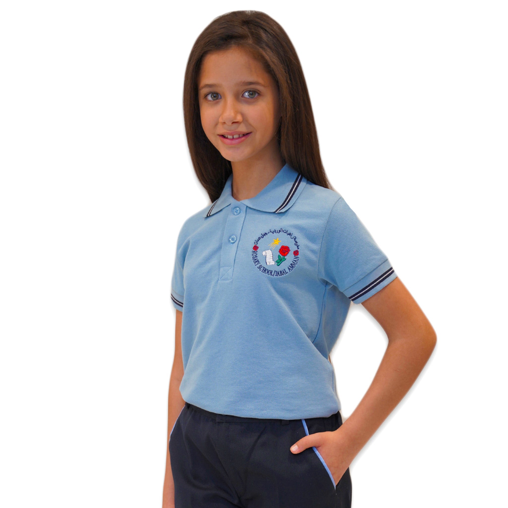 Keep your child looking smart and feeling comfortable with the official Rosary School Jabal Amman short-sleeve polo shirt. This light blue uniform top is designed to offer a polished appearance perfect for daily classroom wear.